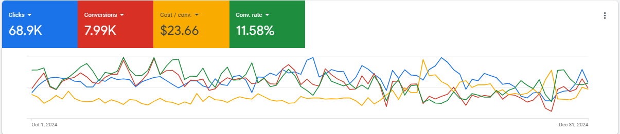 Generated over 7.99K leads in Q4 of 2024 while lowering cost per lead to $23.66. Daily campaign optimizations enhanced performance, increased conversion rates, and significantly improved advertising efficiency.